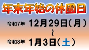 令和7年12月29日(月)~令和8年1月3日(土)は休園日となります。