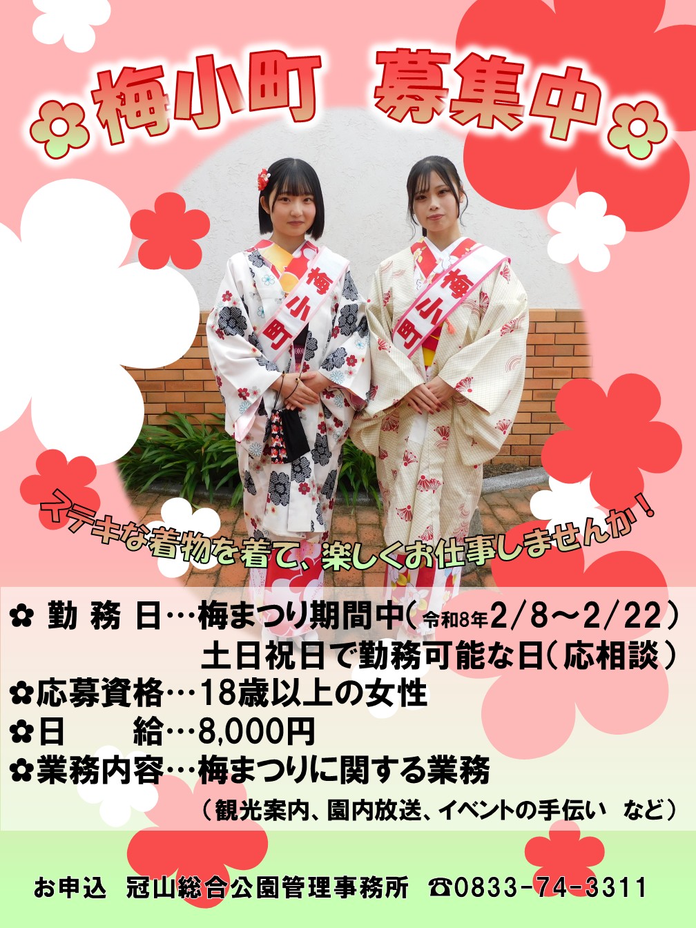 梅まつり期間中、彩りを添えてくれる[梅小町]を募集中です!!